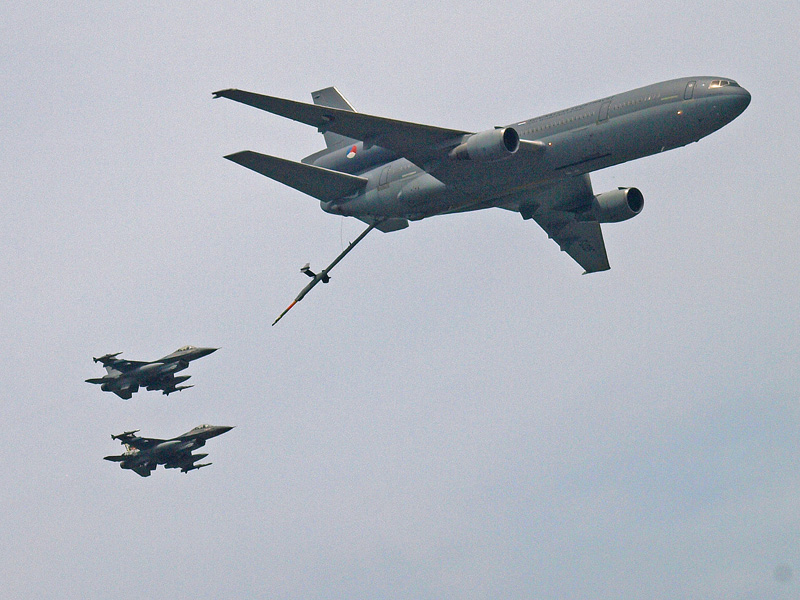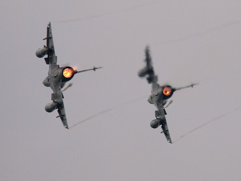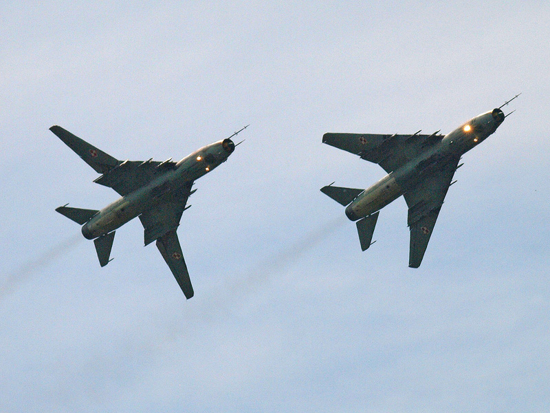 - A 30-as és 34-es oldalszámú JAS-39 Gripen. A 30-ason AIM-9L-1 a távolabbi repülőgépen IRIS-T légiharc rakéta függesztve az AIM-120 mellett. (forrás: Gazsó Krisztián Árpád